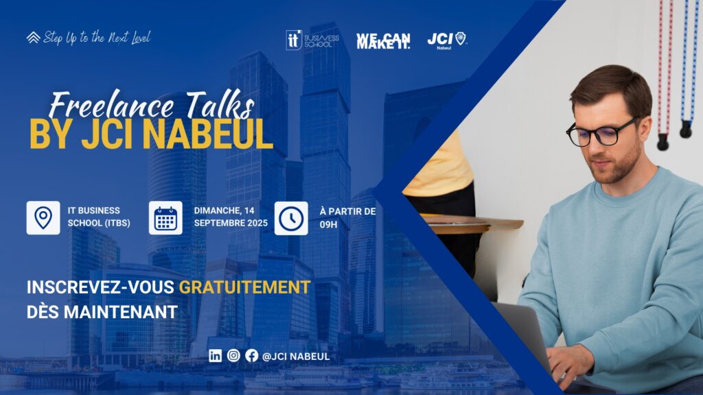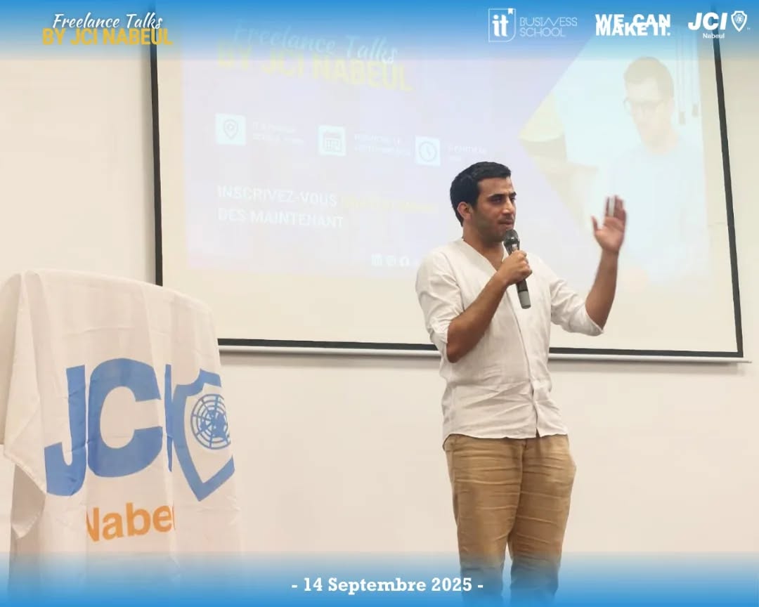 Le dimanche 14 septembre, la JCI Nabeul a organisĂ© avec succĂšs une nouvelle Ă©dition de Freelance Talks, un Ă©vĂ©nement inspirant qui sâest tenu Ă  lâIT Business School Mrezga.