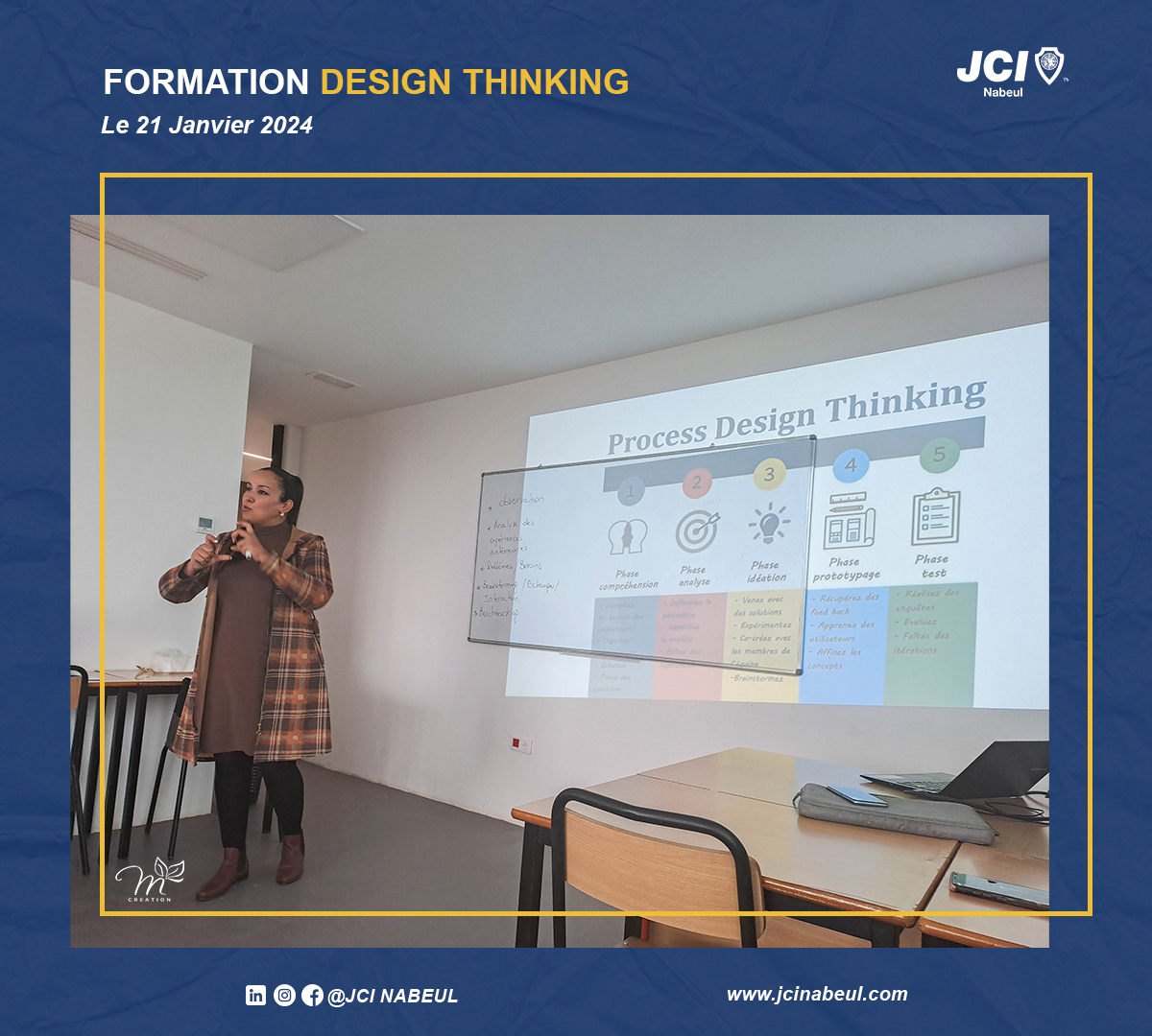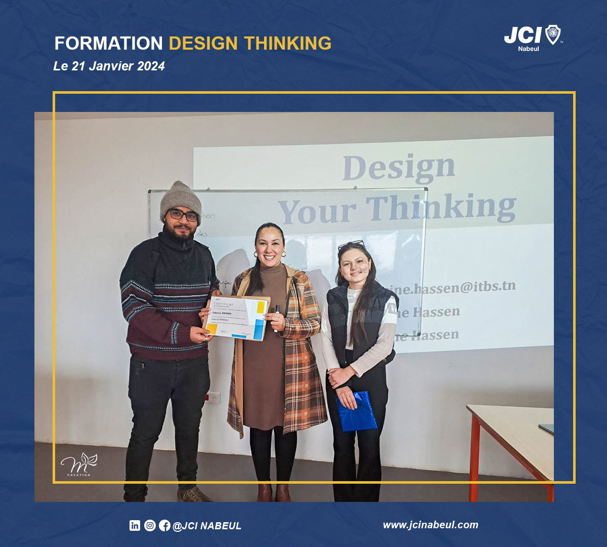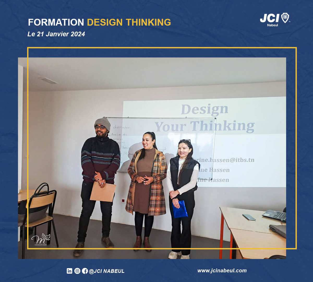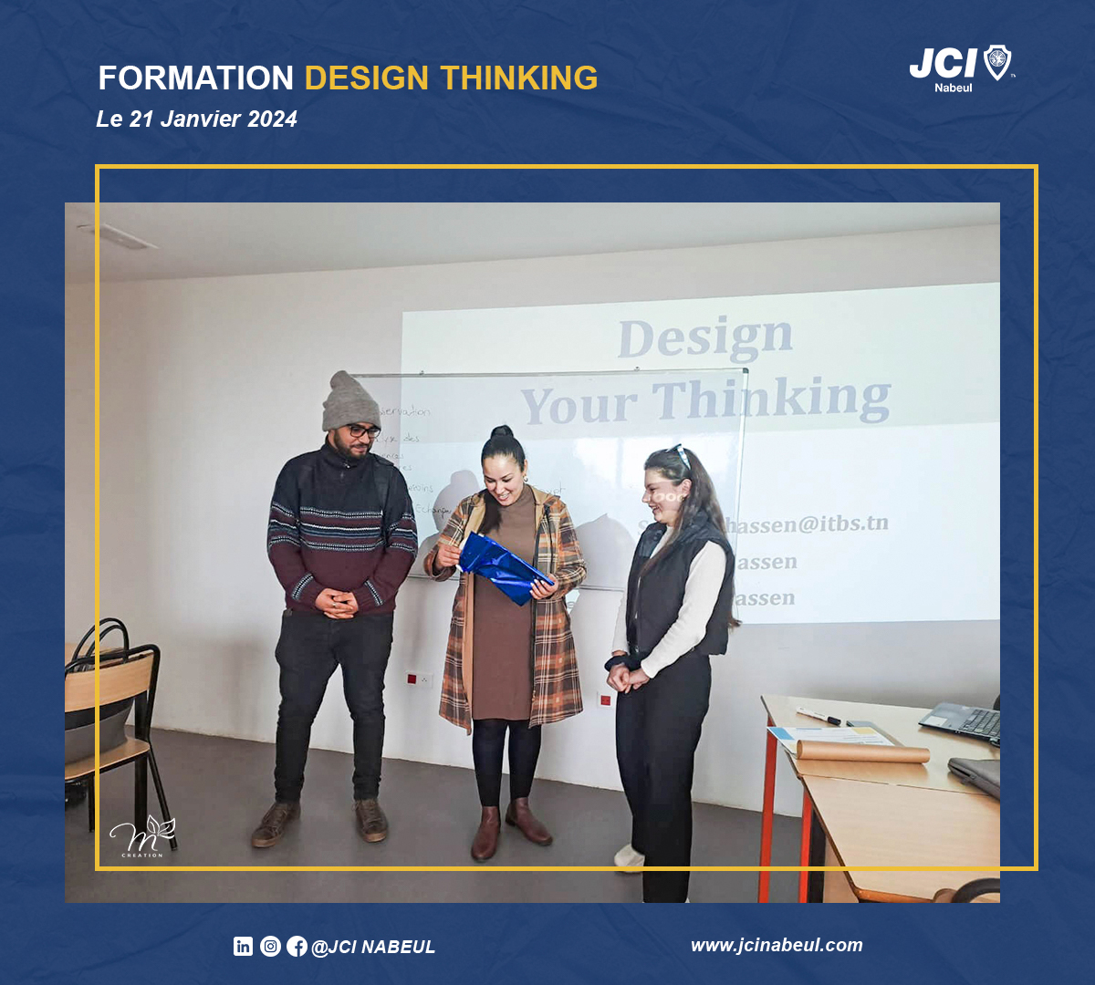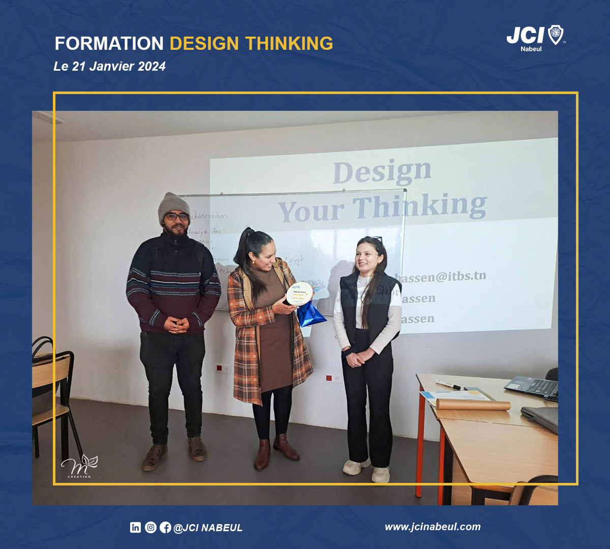 La JCI Nabeul reste résolue à offrir des formations de qualité qui stimulent la créativité et l’innovation. Cette session sur le Design Thinking a ouvert de nouvelles perspectives, et nous sommes impatients de voir comment nos membres appliqueront ces connaissances dans leurs projets futurs.