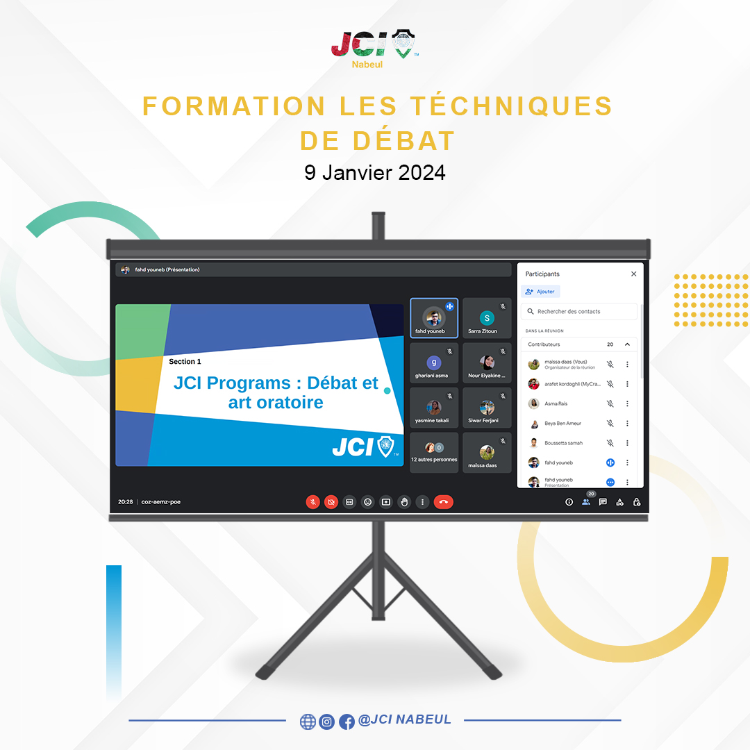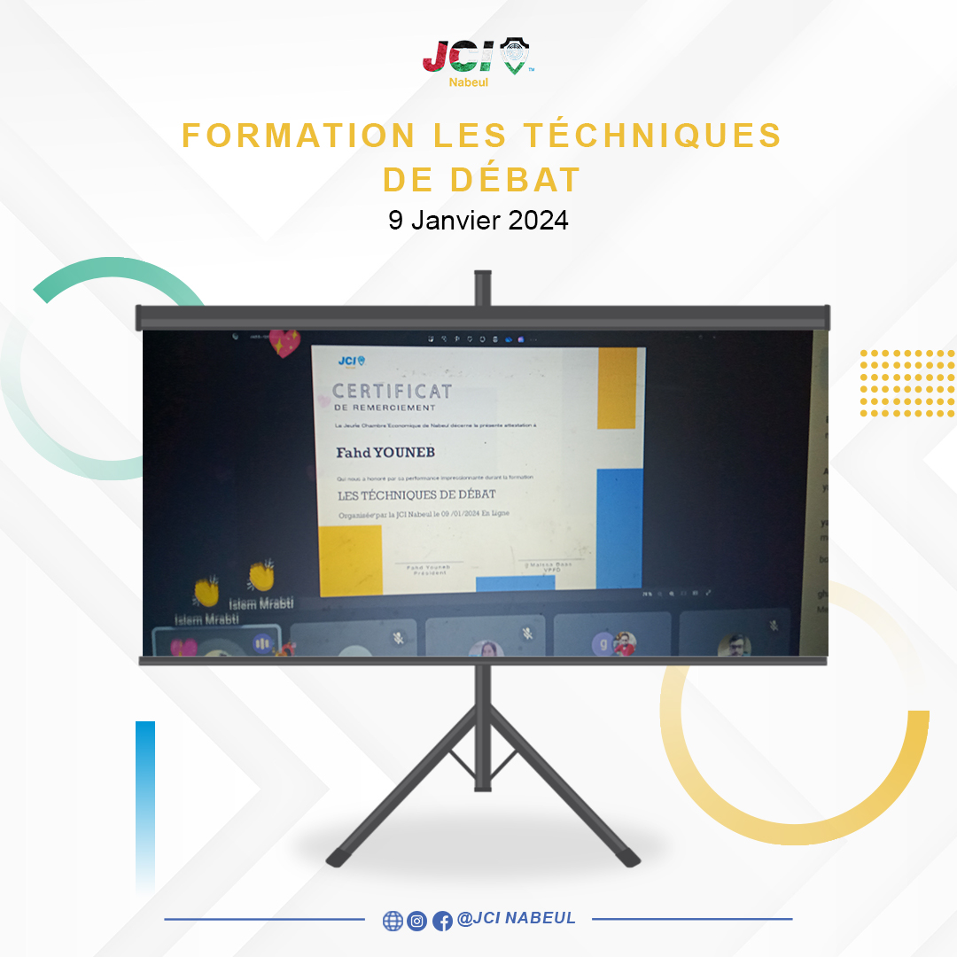 La JCI Nabeul demeure déterminée à offrir des formations de qualité, permettant à ses membres de développer des compétences essentielles. Cette formation sur les Techniques de Débat représente une étape importante dans notre engagement envers l’excellence continue.